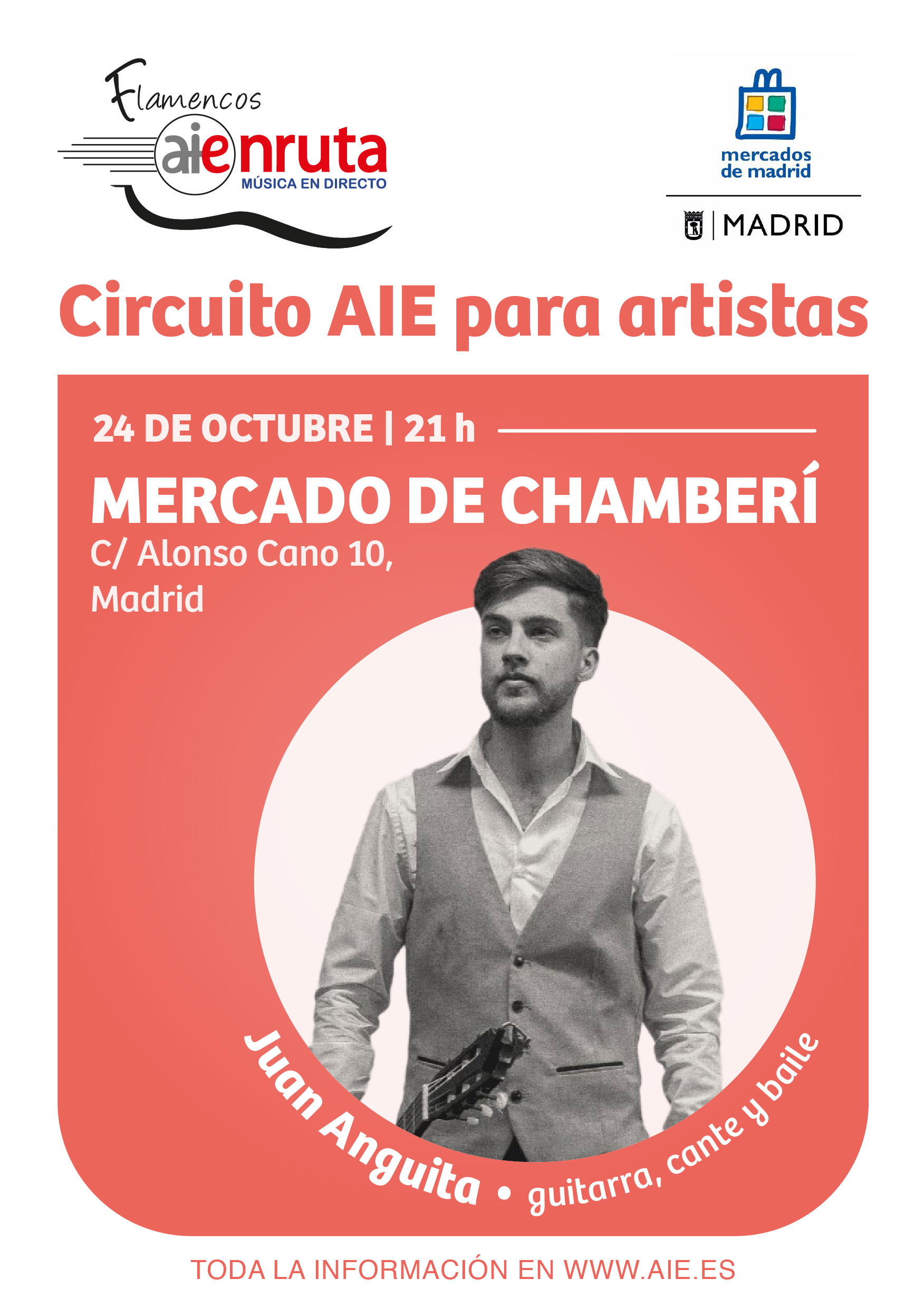 下周五,即 10 月 24 日晚上 9 点, Chamberí 市场(C/ Alonso Cano, 10) 将成为最佳弗拉门戈表演的舞台,届时将有吉他手Juan Anguita在AIE 艺术家巡回项目 (AIEnRUTa-Artistas)中表演,该项目旨在推广现场音乐,并在西班牙各地的场馆和空间向公众展示新的才华。